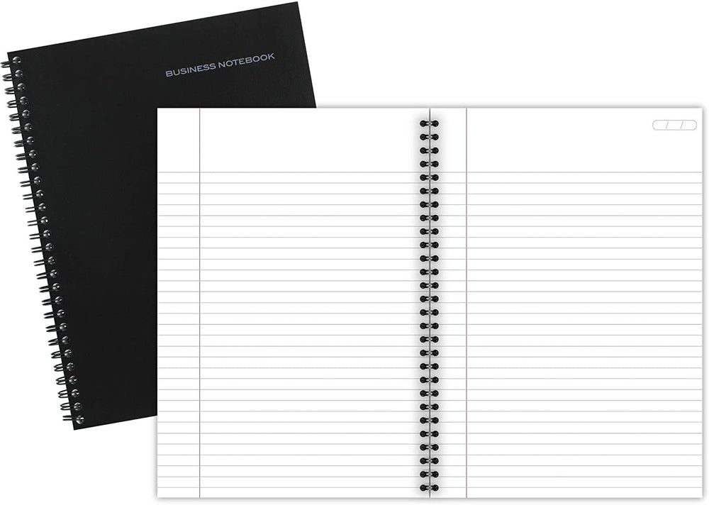 Details: Product DescriptionThe perfect go-anywhere, multi-purpose professionally styled business notebook. This business notebook is ideal for notes, meetings, tasks, follow-ups, and more! Business notebook helps you easily keep notes organized and in one place. The legal ruled paper keeps handwriting neat. Date box on each page lets you track notes chronologically. Pages are perforated for clean and easy removal. The notebook is wire-bound with black, linen covers. Includes 80 double-sided sheets for a total of 160 pages. 6-5/8 x 9-1/2 page size.From the ManufacturerThe business notebook features a professional flexible cover with foil-stamped black linen and black double-wire binding. Premium 20 lb. bond paper is ruled with 9/32 line spacings and a 1 left margin. The margin is 3/8 from the perforation. Perforations allow easy clean removal. Wirebound book contains 80 sheets in a one-subject format.