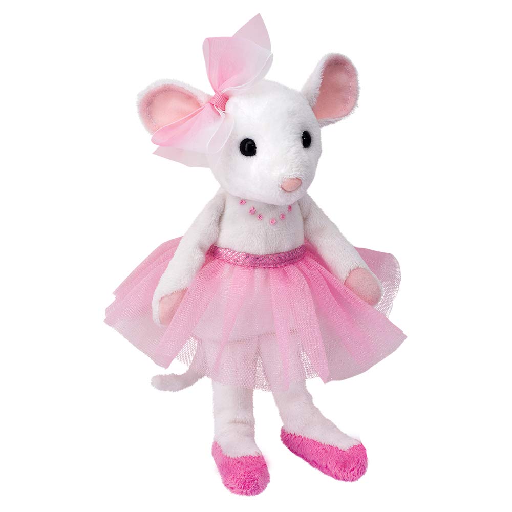 Pirouette and promenade your way to center stage with Petunia, our graceful Ballerina Mouse stuffed animal! This sweet white mouse is dressed up for her big performance in a delicate pink tulle tutu and soft ballet slippers, complete with tiny bows! She also wears a small embroidered necklace and a bow at her left ear. Petunia's large dark eyes contrast against the pale color of her pretty white fur and give this lovable mouse an engaging, gentle expression. Crafted with an imaginative design and the softest materials, Petunia is a cuddly friend that will promote hours of imaginative play and will become a favorite when it's time to snuggle up at the end of the day!