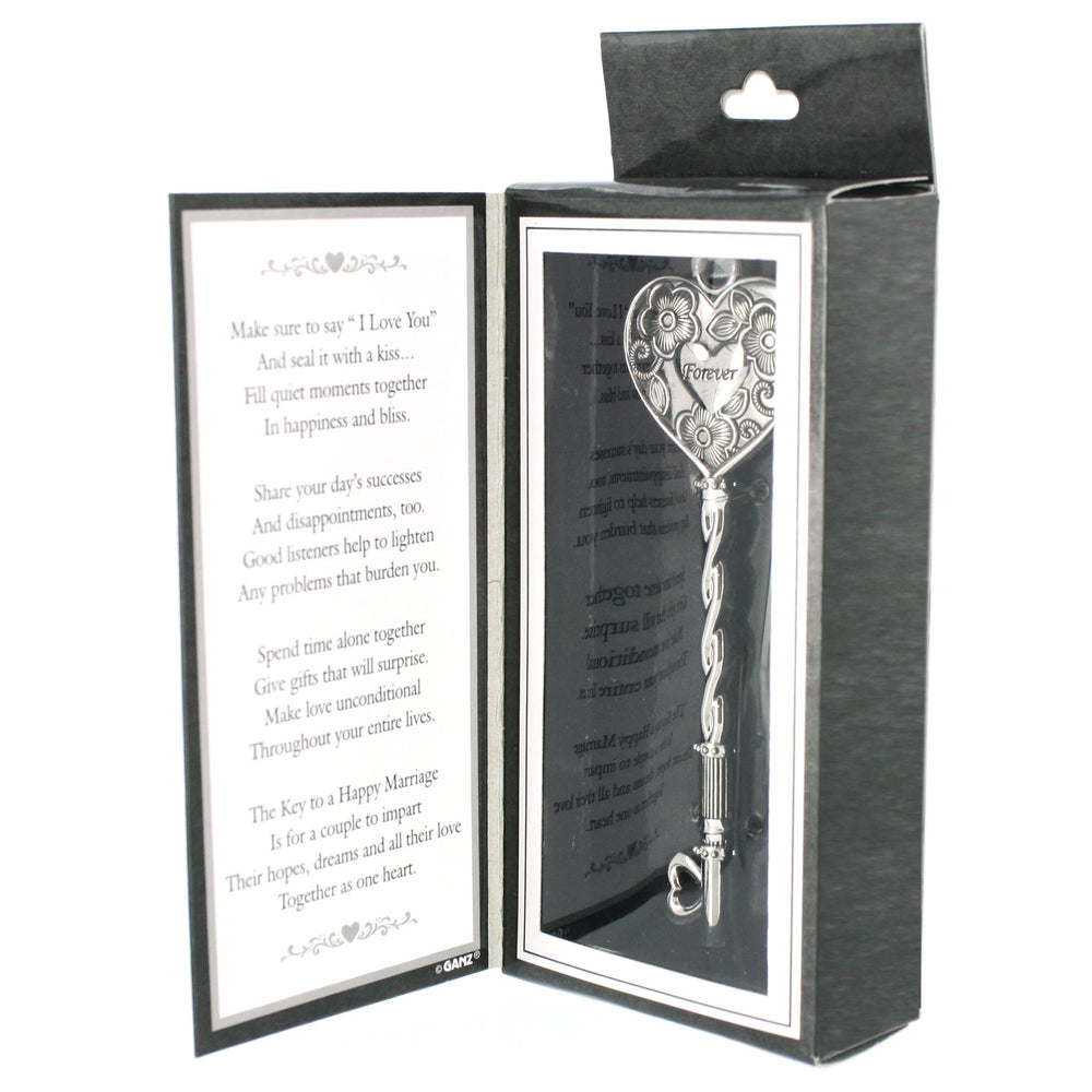 Details: We deliver some of the best gifts in the world - giftware, fashion accessories, top-trending décor, baby fashion and huggable plush, garden, holiday and finishing touches for the home. Key To A Happy Marriage Decorative Hanging Ornament features an ornately designed key with sentiment "Love". Ornament is made of zinc metal with silver tone finish; Includes a white ribbon loop for easy hanging display. Decorative hanging ornament measures approximately 4.75 x 2.5 x 1 inches. Perfect for hanging display on an ornament stand or hook. Ships in protective packaging.
