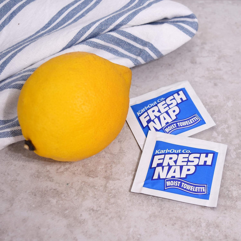 Details: Stay clean and refreshed wherever you go with Kari-Out Fresh Nap Lemon Moist Towelettes. Each soft, single-use wipe is individually wrapped for hygiene and convenience—perfect for cleaning sticky fingers, freshening up after meals, or wiping down surfaces on the go. Infused with a light, fresh lemon scent, these towelettes leave hands feeling clean and revitalized. Whether you’re packing school lunches, prepping for a picnic, or running a food service business, these portable moist towelettes are the ideal solution. With 100 individually wrapped wipes in every bag, you’ll always have a quick, sanitary clean-up option at your fingertips. Great for home, travel, offices, restaurants, parties, or anywhere you need a refreshing clean without water.