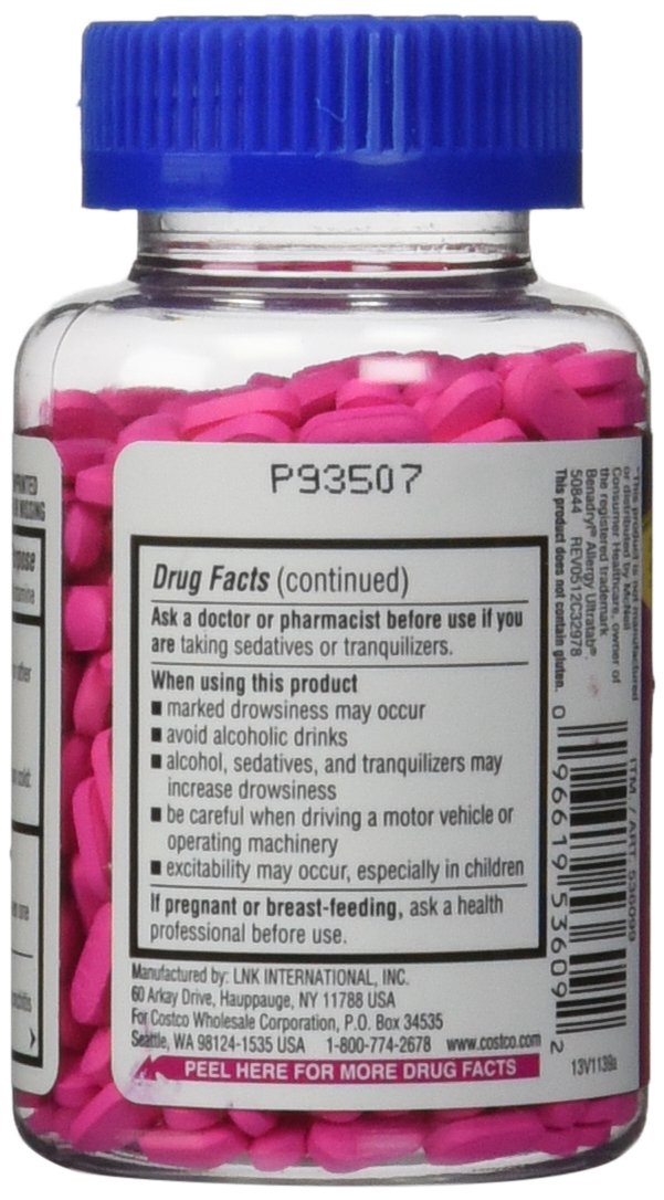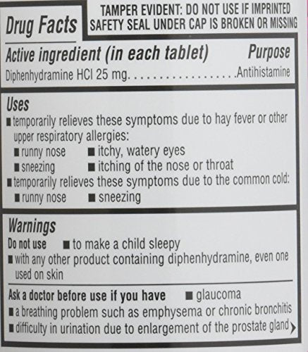 Details: Diphenhydramine HCl 25 mg - Kirkland brand - Allergy medicine and antihistaminecompare to active ingredient of Benadryl allergy generic 1200 Count