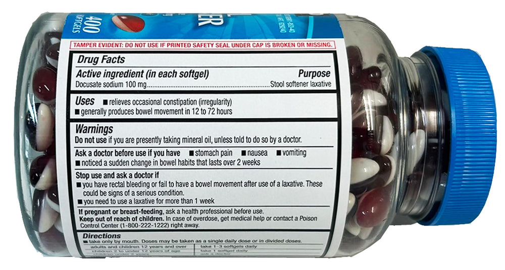 Details: Kirkland Signature stool Softener Docusate Sodium 100 mg, 800 Softgels/2Bottle