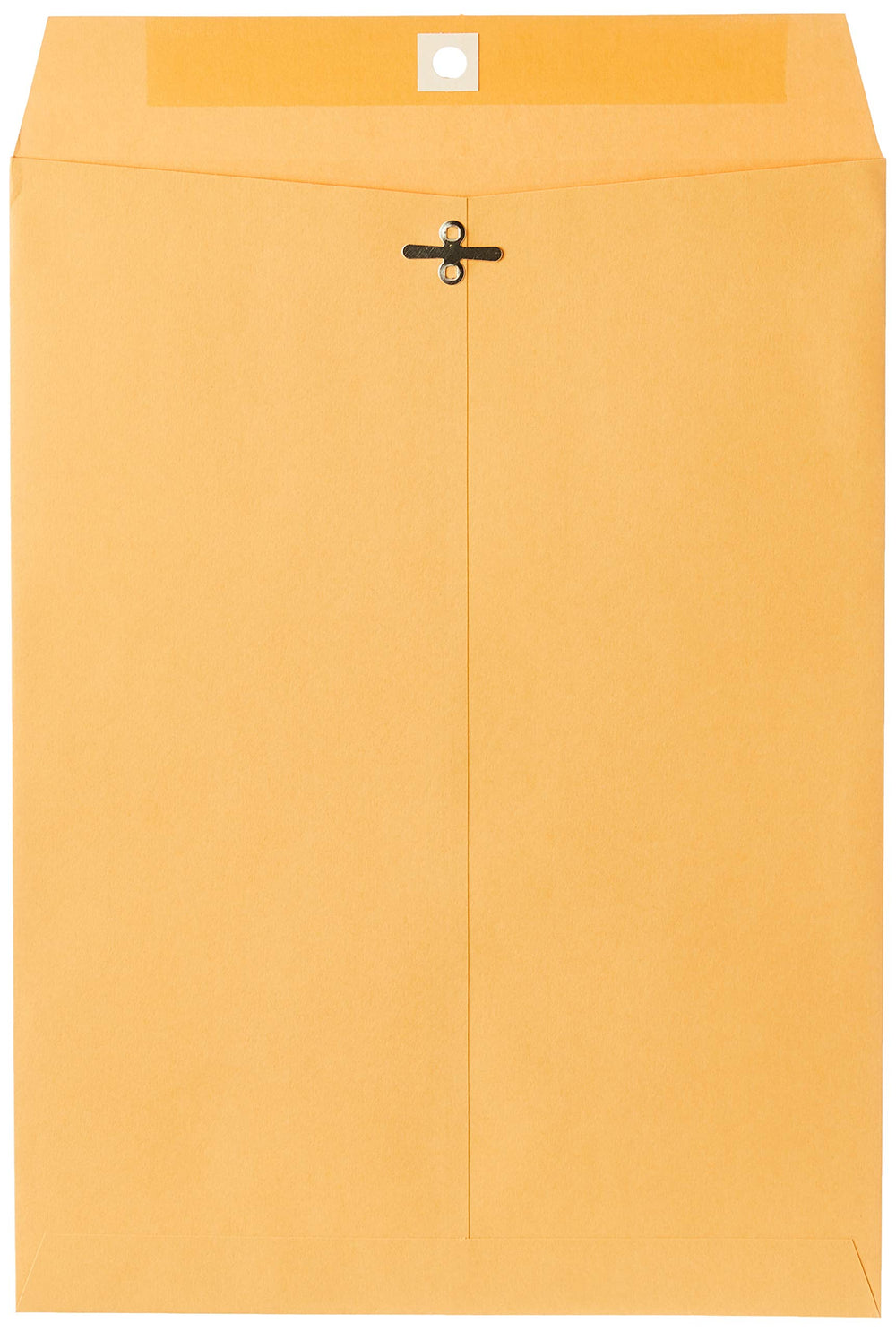 Details: A durable MULTI-PURPOSE envelope. Dual purpose seal allows for multiple uses. Use the moisture activated gummed seal for mailing or the strong metal clasp for repeated use and storage purposes. Features: EXTRA heavy-duty opaque 32lb brown Kraft material provides privacy of contents. Open end closure. Sized: 9" x 12". Quantity = 100 envelopes.