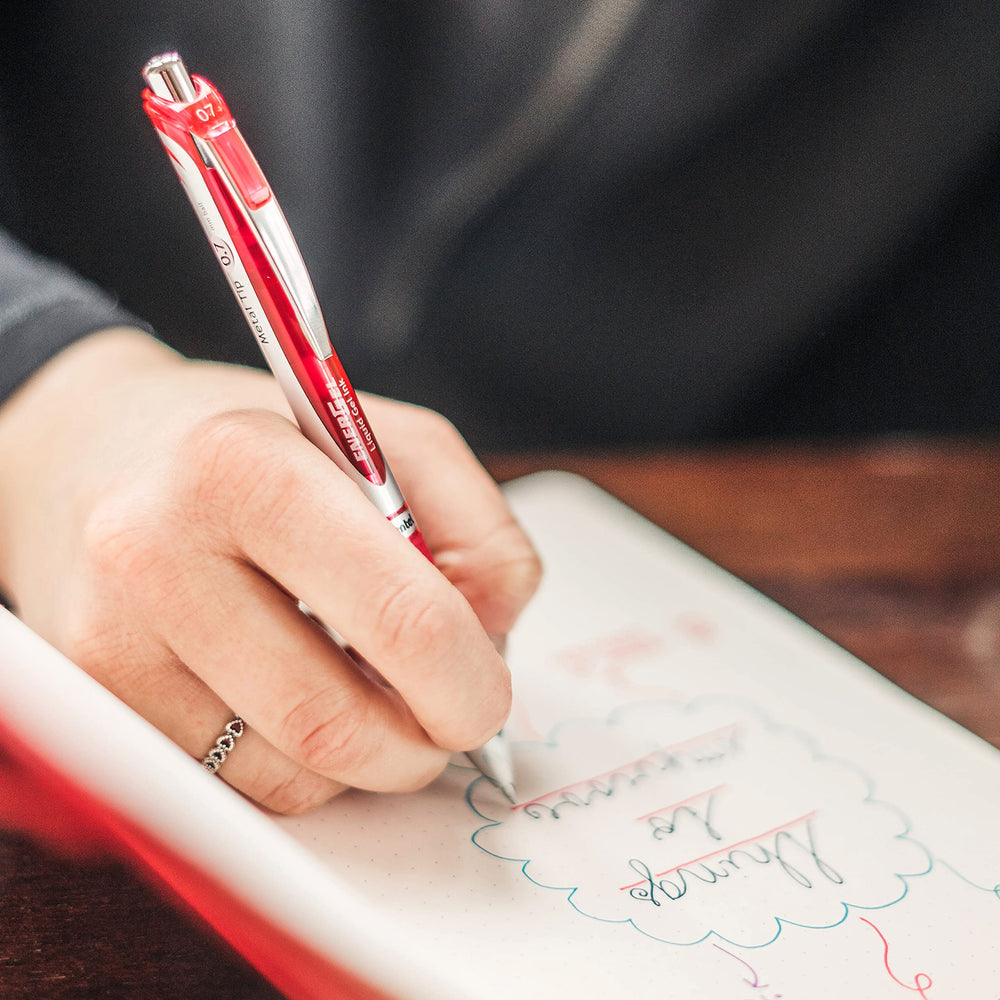 Details: With its revolutionary low viscosity liquid gel ink, the EnerGel formula is quicker drying and smoother flowing than ordinary gel ink, giving a similar sensation to liquid ink. Because the ink dries super quickly it's appreciated by right and left-handed writers alike, as it produces smudge-free results on paper or hands.
