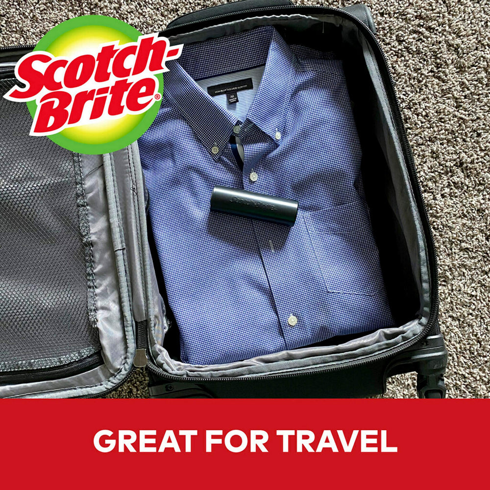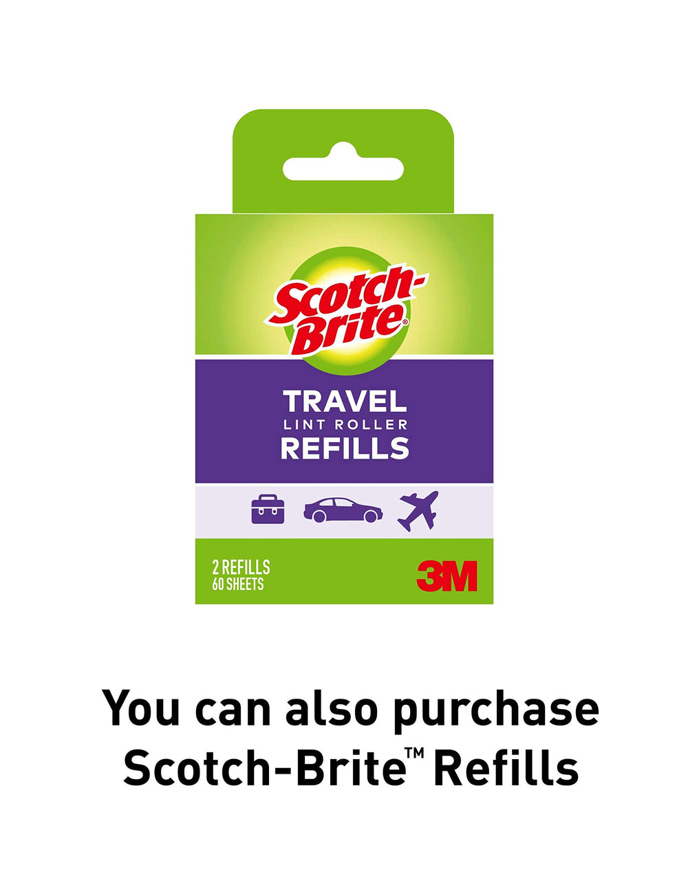 Details: The only lint roller made with Scotch brand adhesive. Scotch Brite Lint Roller can be used on plants, coats, sweaters, dresses suits, formal wear, and more. Optimal adhesive removes lint and hair without damaging fabric. The sheets are guaranteed to tear cleanly every time. The Scotch Mini Roller is ideal for on the go removal of lint and pet hair.